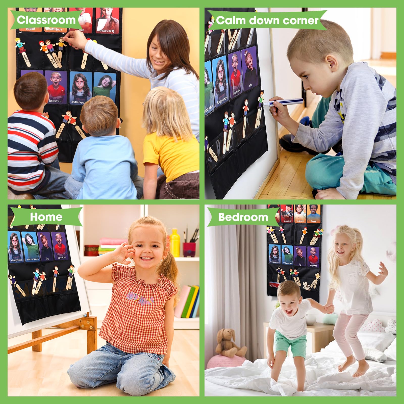 - CLASSROOM MUST HAVES FEELINGS CHART: The emotions flash cards are designed to help children learn and express their feelings and emotions in environments such as classroom, familiy, or day care center.